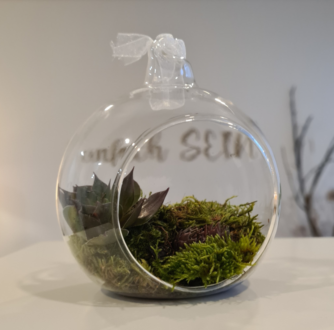 ... Sukkulente und Moos in Glaskugel
