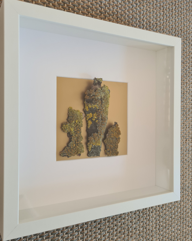 ... abgefallene Rinde mit Flechten (im Bilderrahmen)