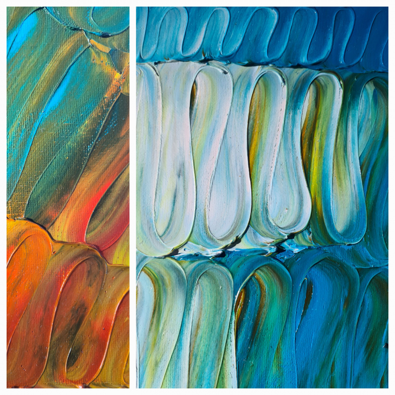 "intuitives Malen" mit Ölfarbe und Spachtel